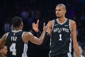 本场,文班亚马出战38分50秒,24投12中,三分10中4,罚球11中10,砍下38分16篮板3助攻5盖帽,正负值+20。福克斯高效发挥,出场32分钟22投12中,三分10中4、罚球2中1砍下29分5篮板3助攻2抢断1盖帽,正负值+17。