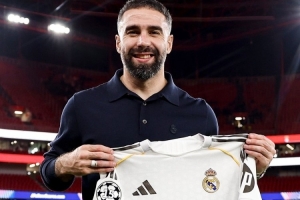 赛后皇马官推晒出了卡瓦哈尔、布拉欣·迪亚斯手持纪念球衣和小将皮塔奇手持全队签名球衣的照片,向卡瓦哈尔皇马的第300胜里程碑、迪亚斯第100胜里程碑以及皮塔奇的皇马正式比赛首秀送上祝贺。