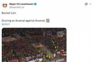 药厂社媒晒出安德里希破门视频,并配文:‘愿望清单:对阵阿森纳时攻入一粒阿森纳式进球✅’。