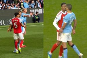 第83分钟,加布里埃尔与哈兰德争抢高空球将他压倒,哈兰德起身推了一把加布里埃尔,随后两人顶牛,期间加布里埃尔发力顶向哈兰德,罗德里再次第一时间冲上来为哈兰德出头,与加布里埃尔顶牛⬇️