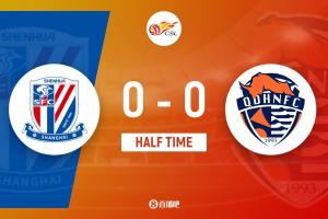 上半场补时4分钟,上海申花0-0青岛海牛。